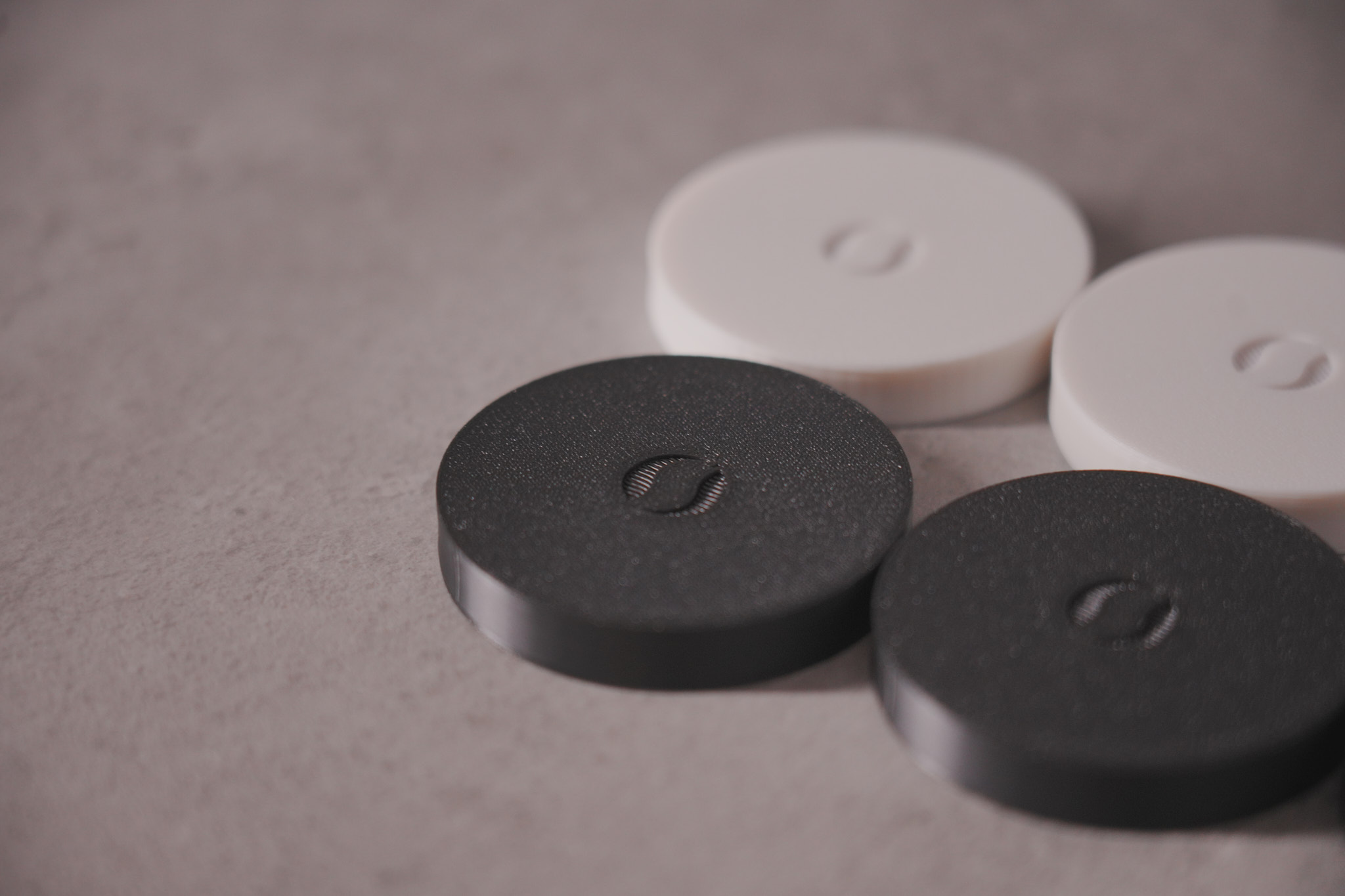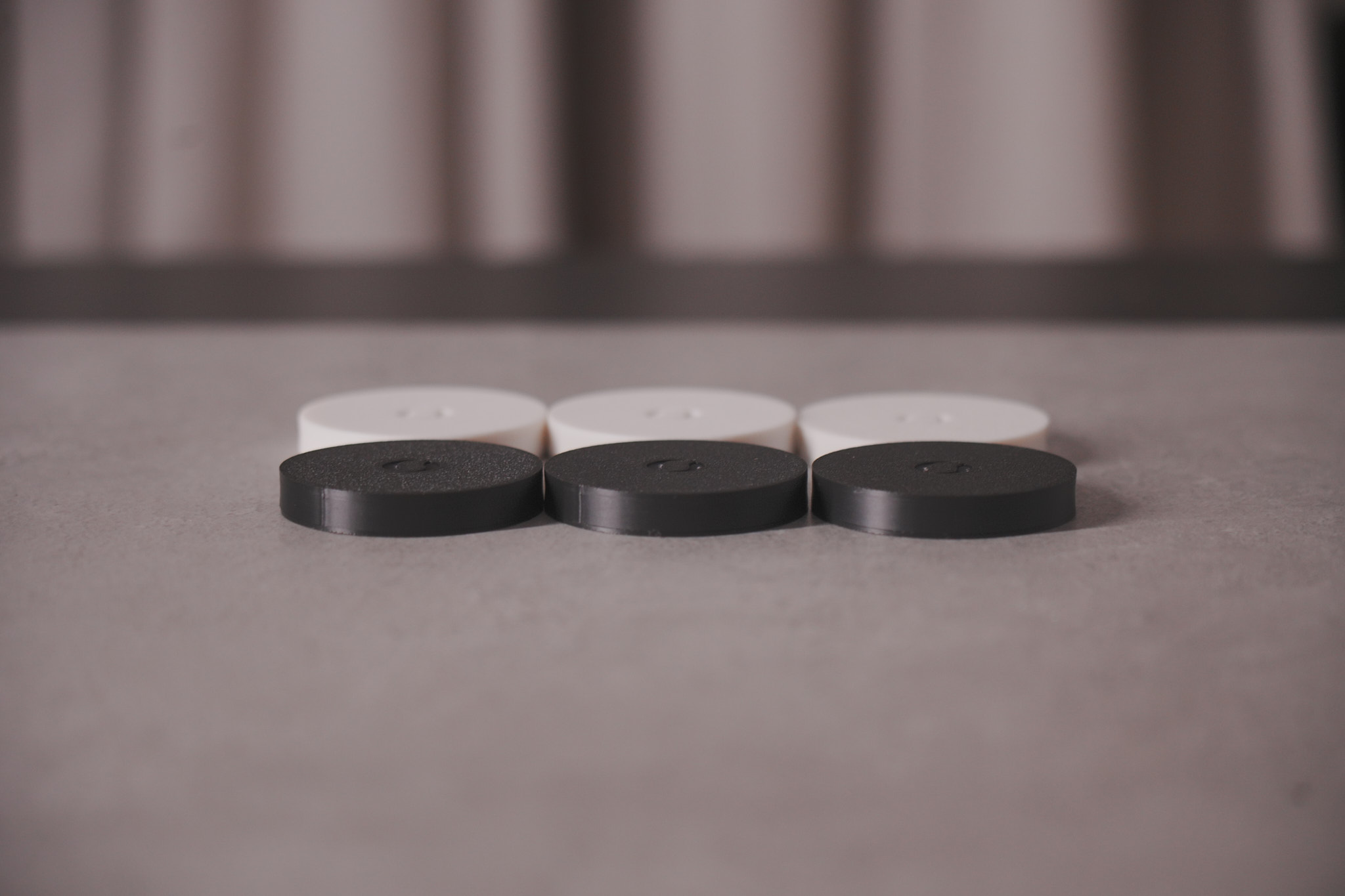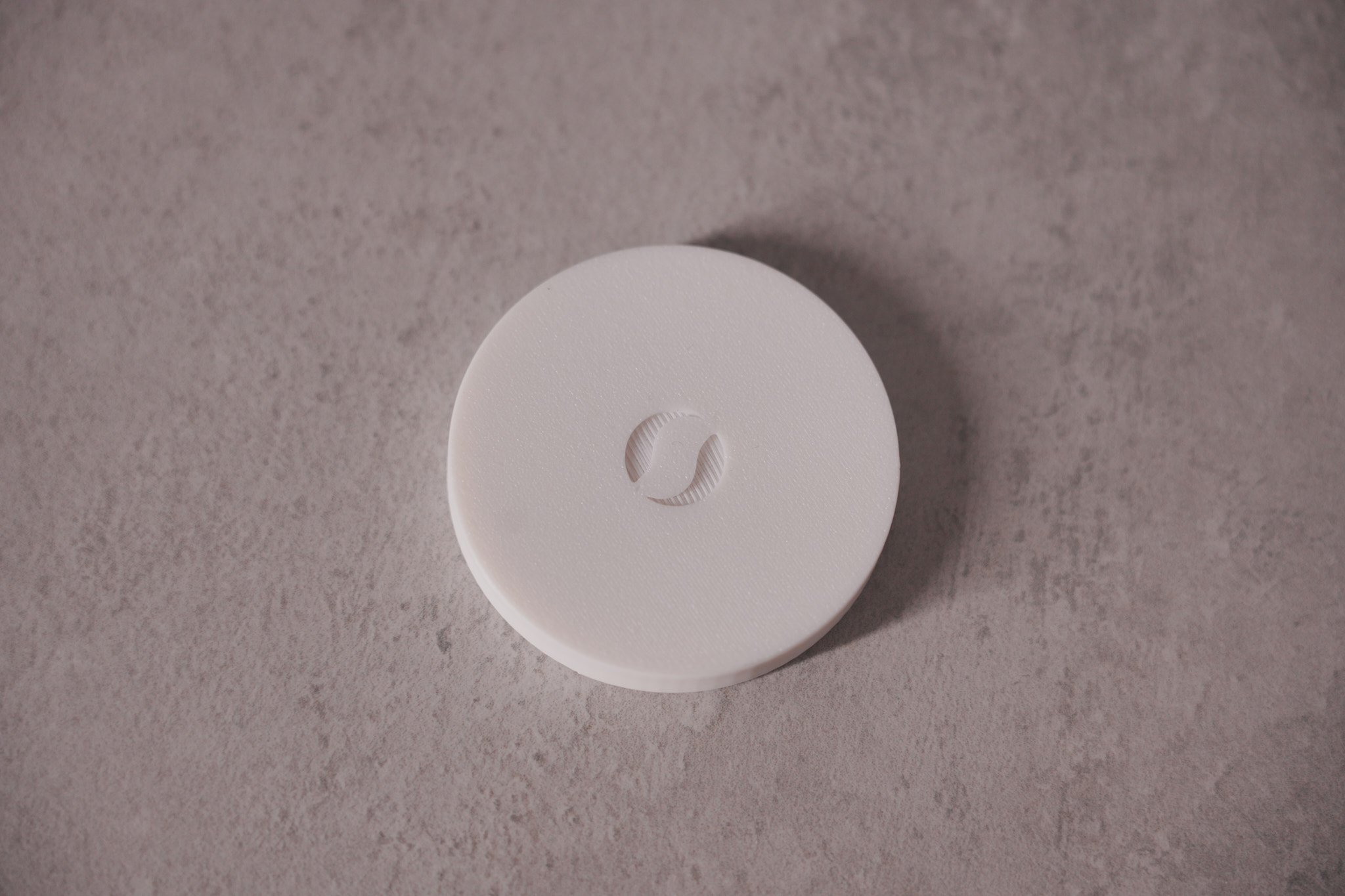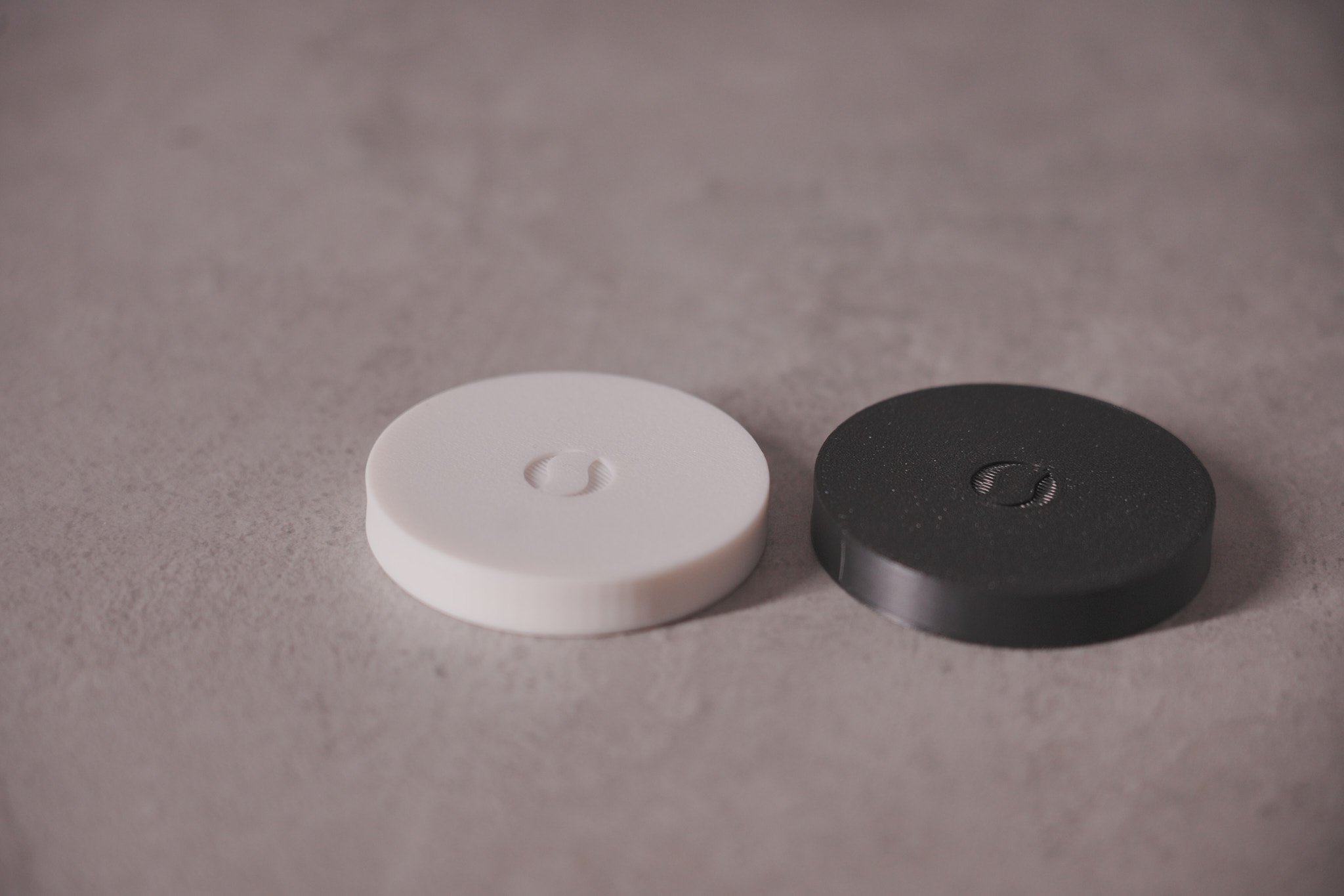 The Acoustic Discs are compact (Ø 54 mm, height 9 mm), available in black or white, and can even be painted to match your wall color. They blend in seamlessly and are almost invisible.